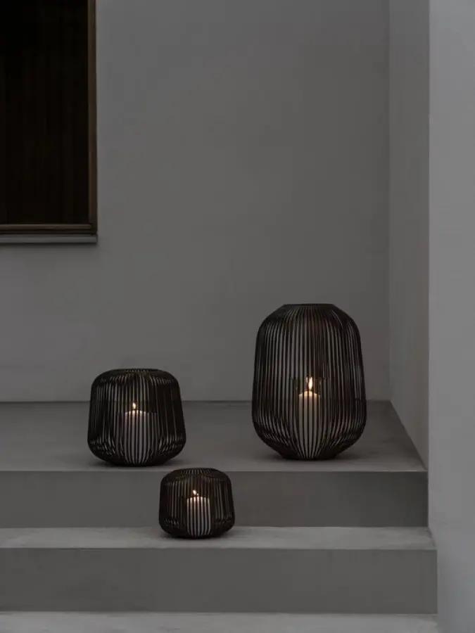 Dit windlicht is vervaardigd uit stevig metaal met een poedercoating, waardoor het niet alleen duurzaam is, maar ook een mooie matte afwerking heeft. De coating beschermt het materiaal en zorgt ervoor dat het windlicht lang mooi blijft.