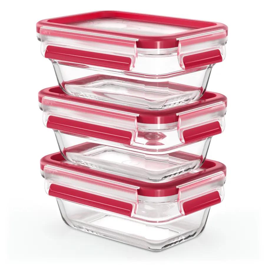 Met een breedte van 126 mm, diepte van 183 mm en hoogte van 210 mm passen deze rechthoekige bewaardozen gemakkelijk in je koelkast of keukenkast. Bovendien zijn ze stapelbaar, wat zorgt voor een nette en georganiseerde opbergruimte. Elke container heeft een inhoud van 450 ml, perfect voor kleinere porties of restjes.