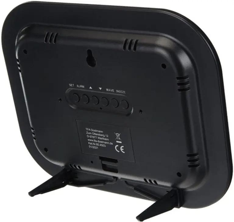 Het TFA 60.4503 digitale weerstation heeft een strak zwart horlogekast dat in vrijwel ieder interieur past. Het monochrome display zorgt voor een heldere en overzichtelijke tijdsaanduiding, waardoor je altijd in één oogopslag de tijd en andere gegevens afleest.