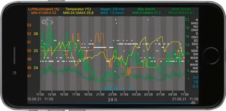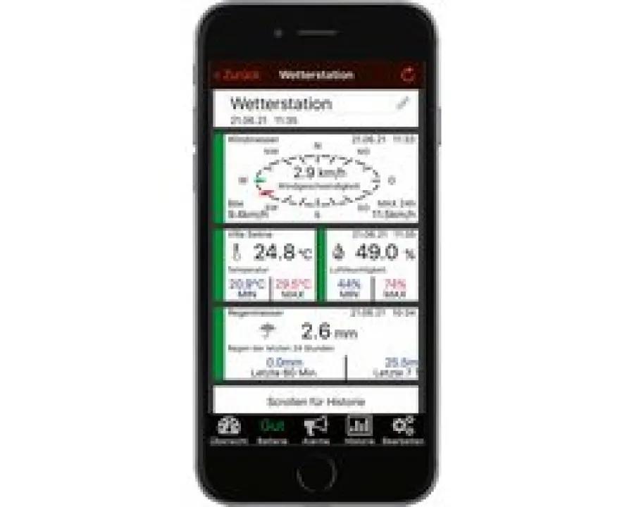 Je bedient het systeem snel en eenvoudig met de gratis WeatherHub-app. Hiermee lees je niet alleen de actuele meetwaarden uit, maar ook de gegevens van de afgelopen 90 dagen worden opgeslagen. Dankzij pushmeldingen blijf je direct op de hoogte bij waarschuwingen, zodat je nooit voor verrassingen komt te staan.