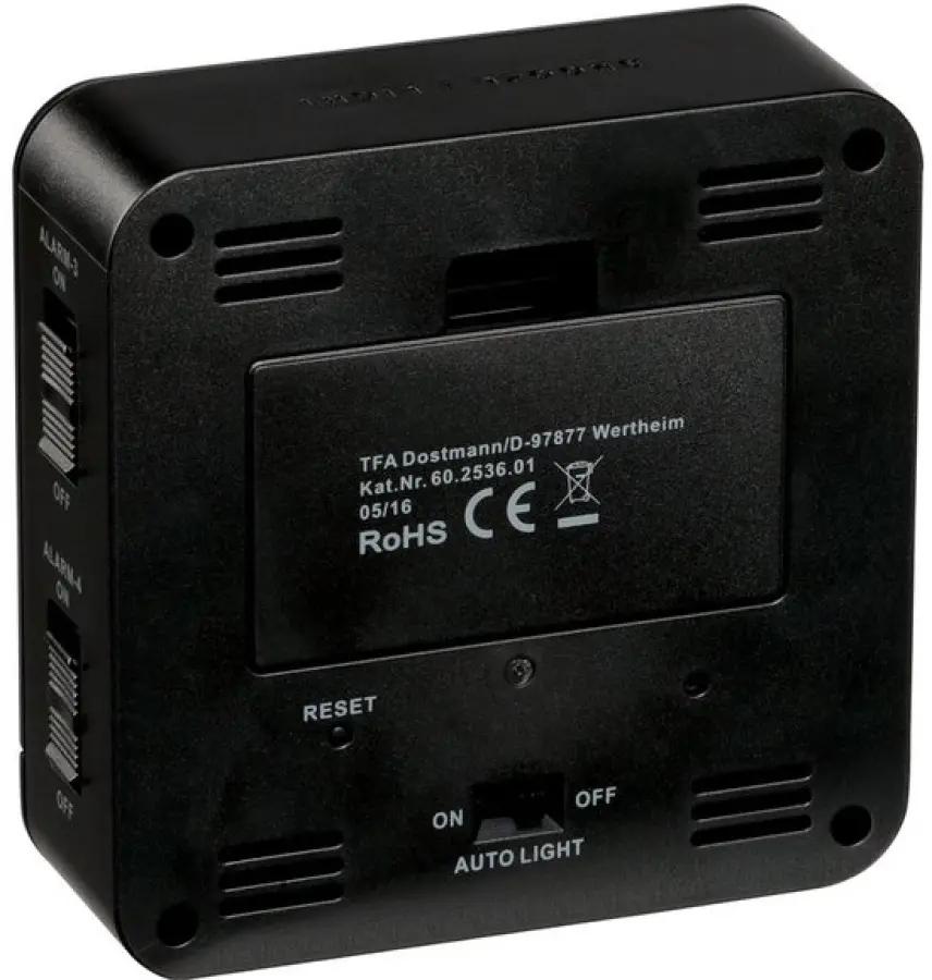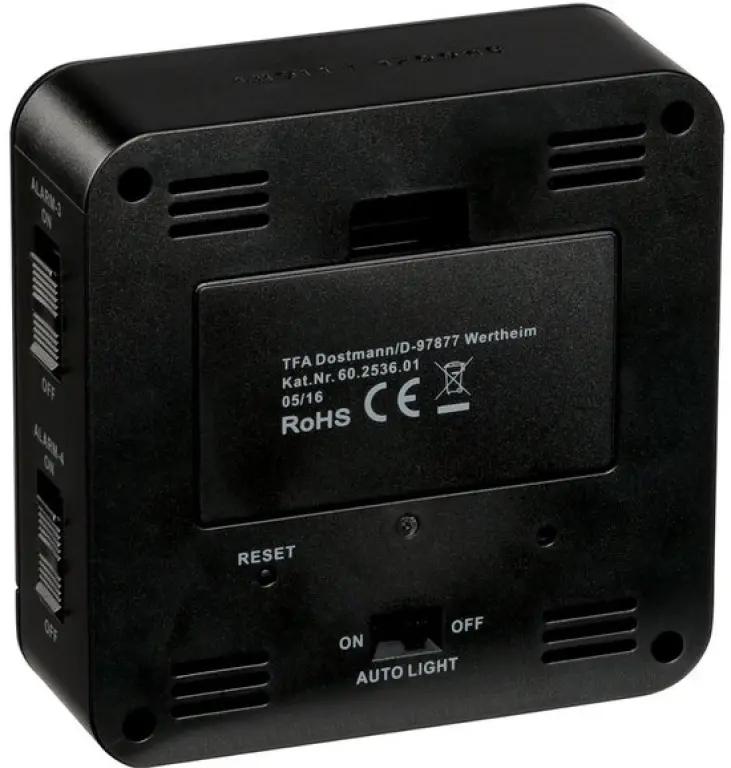 De TFA 60.2536.01 digitale wekker heeft een strak zwart design dat perfect past in elke slaapkamer of kantoor. Met een hoogte van 3,20 cm en een lengte en breedte van respectievelijk 9,10 en 9,20 cm neemt deze wekker weinig ruimte in beslag en staat hij altijd stijlvol op je nachtkastje.