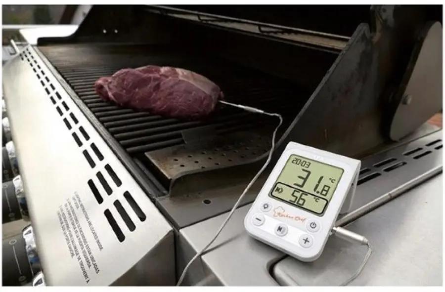 Dankzij de roestvrijstalen probe met een kabel van ongeveer 120 cm kun je de temperatuur eenvoudig aflezen zonder je oven of grill te openen. Je kunt een gewenste temperatuur instellen, waarna de thermometer een alarm geeft zodra deze is bereikt. Zo hoef je niet constant te controleren en voorkom je dat je eten te gaar of juist te rauw wordt. De thermometer heeft een digitaal display met backlight, wat het aflezen ook in donkere omgevingen makkelijk maakt.