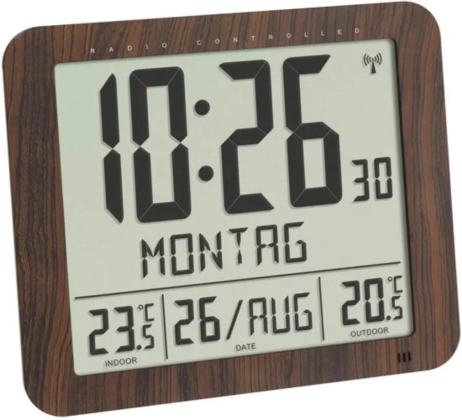 De digitale klok heeft een eenvoudig en helder design in een warme houtlook. Hierdoor past hij in elke omgeving, of je hem nu ophangt aan de muur of neerzet. Met een rechthoekige vorm en een hoogte van 206 mm is hij een mooie en functionele toevoeging aan je interieur.
