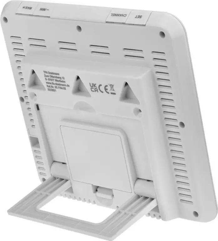 Het basisstation is wit van kleur en heeft een strak ontwerp. Je kunt het neerzetten of eenvoudig aan de muur hangen, afhankelijk van wat jou het beste uitkomt. De meegeleverde thermo- en hygrozender meet nauwkeurig de buitenlucht en geeft deze gegevens draadloos door aan het basisstation.