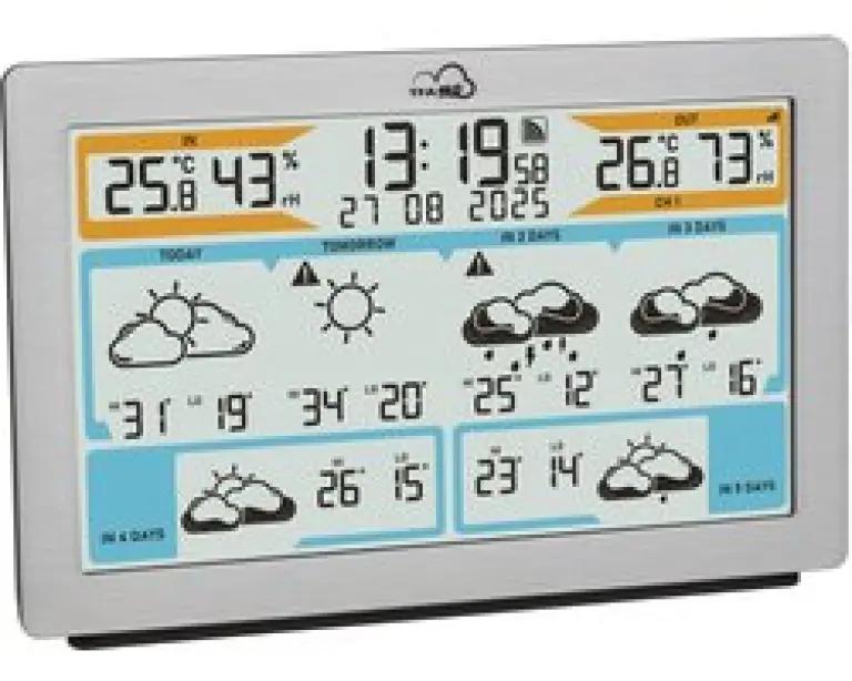 Het TFA TFAme 35.8100.54 WLAN weerstation biedt je een professionele weersvoorspelling van 3 tot 6 dagen, direct bij jou thuis. Dankzij de verbinding met het online weerplatform wetter.com ontvang je de meest actuele weerupdates zonder reclame, abonnementen of extra kosten. De voorspellingen worden elk uur gecontroleerd en automatisch bijgewerkt, zodat jij altijd op de hoogte bent van het weer, of het nu gaat om zon, regen, wind of extreme omstandigheden.