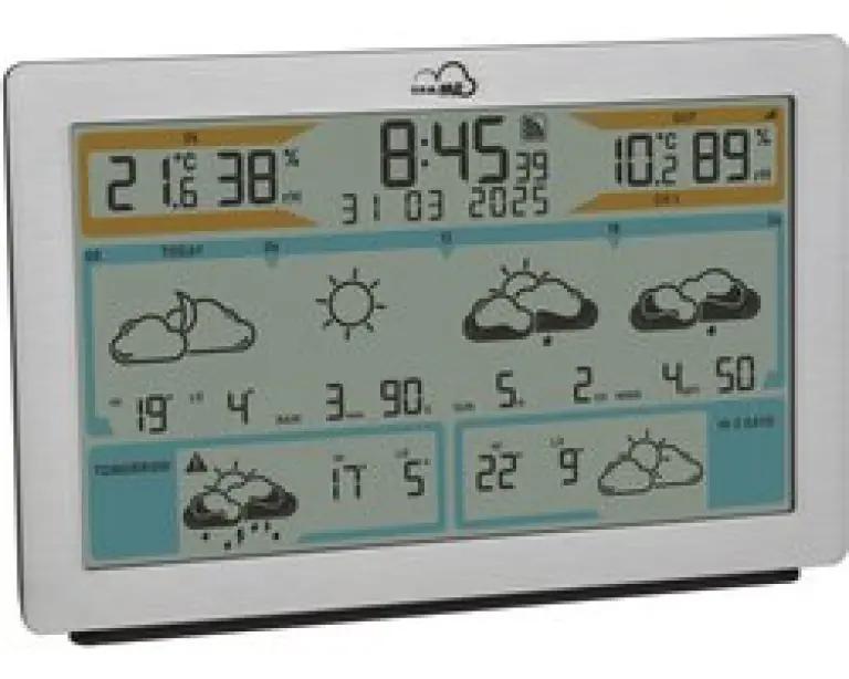 Op het grote digitale display met achtergrondverlichting en dimfunctie zie je maar liefst 40 verschillende weersymbolen en iconen. Het station geeft je niet alleen de lokale maximum- en minimumtemperaturen, maar ook de kans op regen, verwachte regenval, zonuren, UV-index, windsnelheid en windrichting. Bij extreem weer waarschuwt het apparaat je met een duidelijk zichtbaar symbool, zodat je voorbereid bent op storm, hitte, ijzel of andere bijzondere situaties.