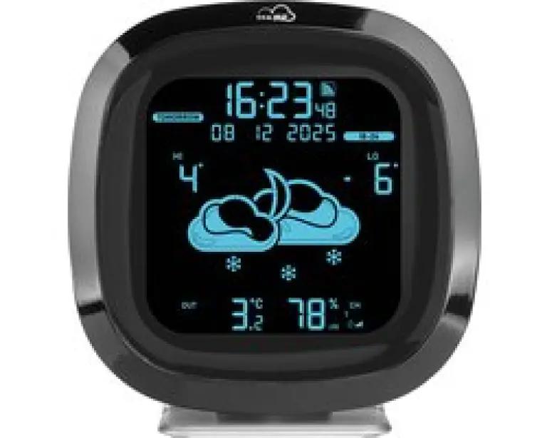 Het weerstation heeft een modern omgekeerd display met 4 helderheidsniveaus en een dimfunctie. Je kunt kiezen uit maar liefst negen kleuren voor de segmenten, zoals groen, wit, lichtblauw, paars, roze, rood, oranje en geel. Het display toont 40 verschillende weersymbolen en pictogrammen voor een gedetailleerd overzicht. Het station kan staand geplaatst worden of aan de muur gehangen worden dankzij het ophangoog.