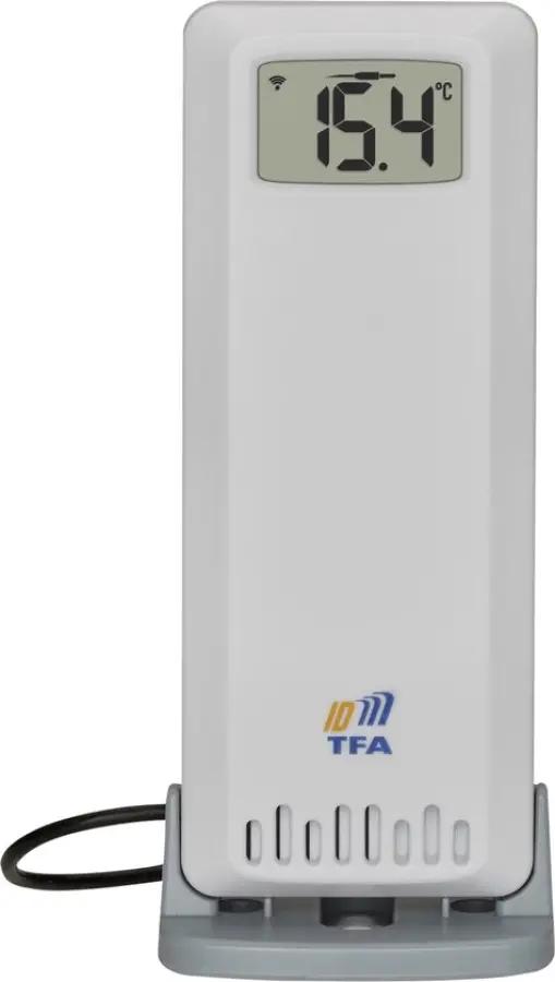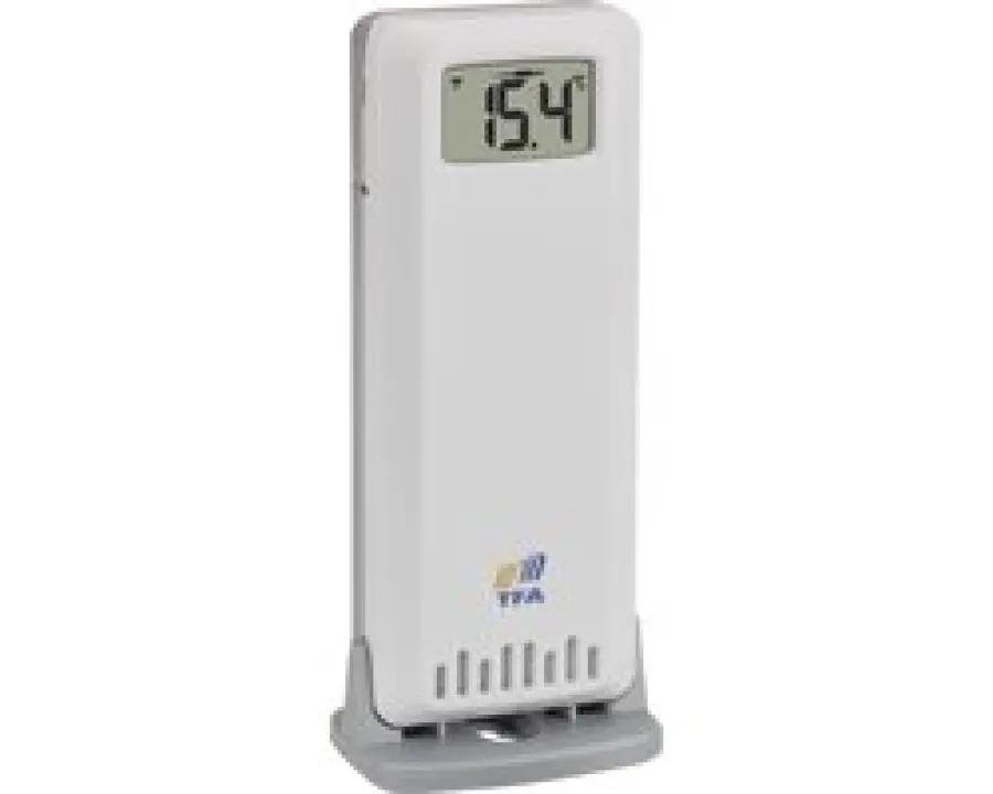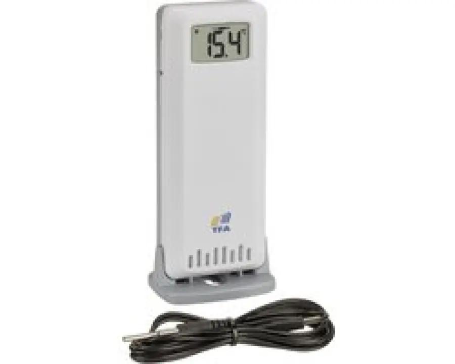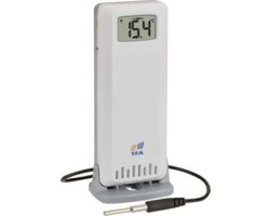 Met de TFA 30.3905.02 thermo- en hygrosensor houd je eenvoudig de temperatuur en luchtvochtigheid in je omgeving in de gaten. Deze sensor verzendt draadloos op 868 MHz, zodat je zonder gedoe met kabels actuele meetgegevens ontvangt. Handig voor zowel binnen als buiten dankzij de waterbestendige kabelsensor die ook een tweede temperatuurwaarde meet. Zo heb je altijd een compleet overzicht, of je nu de lucht in huis meet of de temperatuur van een koelapparaat of vloeistof.