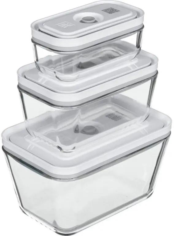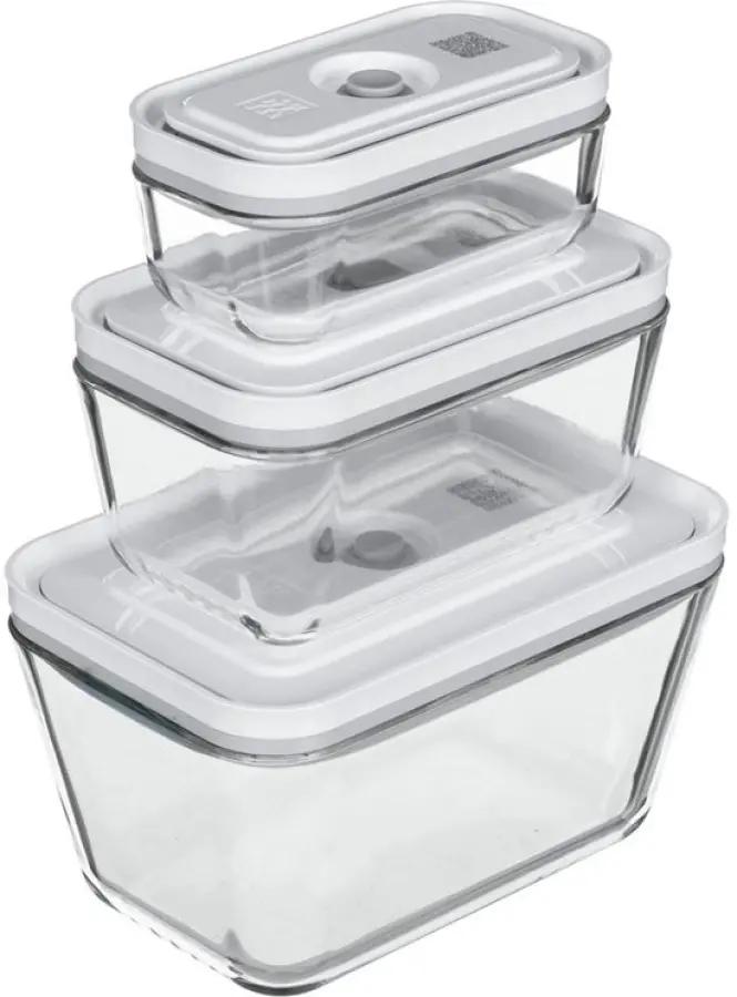 Deze set bestaat uit drie rechthoekige vershoudbakjes in verschillende maten: S (200ml), M (750ml) en L (1600ml). De potten zijn gemaakt van stevig borosilicaatglas en hebben een elegant design, waardoor ze ook perfect zijn om direct aan tafel te serveren. Dankzij het stapelbare ontwerp nemen ze weinig ruimte in in je koelkast of diepvries en passen ze compact in de kast wanneer je ze niet gebruikt.
