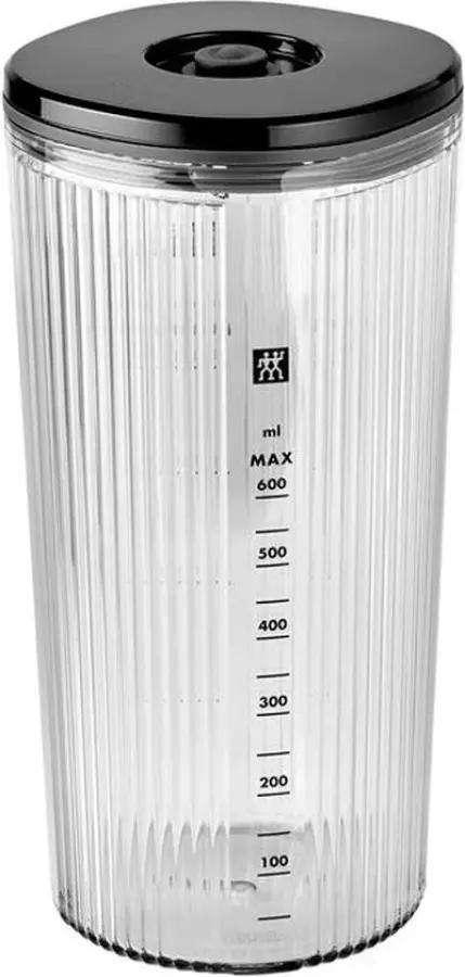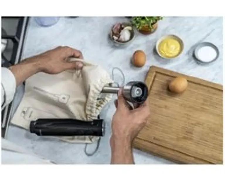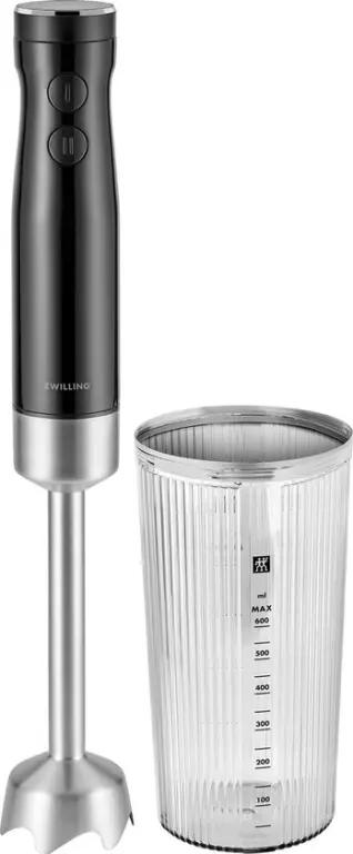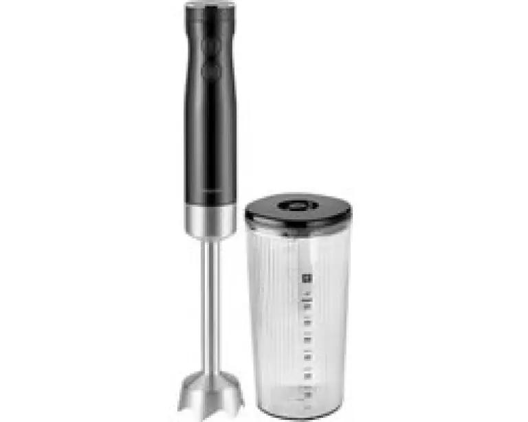 Bij de Zwilling ENFINIGY staafmixer krijg je een mengbeker van 600 ml met maatverdeling, ideaal om ingrediënten direct te verwerken. Het snoer van 1,2 meter geeft je voldoende bewegingsvrijheid tijdens het mixen. Bovendien wordt de staafmixer geleverd met een katoenen opbergzak, zodat je hem netjes en makkelijk kunt opbergen wanneer je klaar bent.