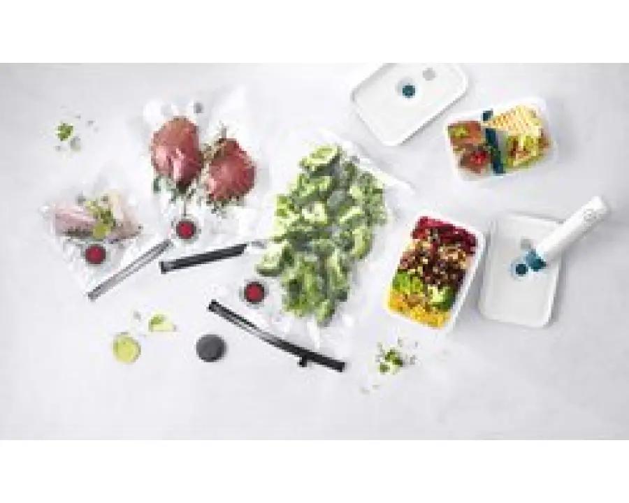 | Aanvullende functies | Voedsel blijft langer vers dankzij de vacuümfunctie Gemakkelijke tracering van de houdbaarheid via QR-code en app Krachtige & ruimtebesparende vacuümpomp Magnetron, vriezer, vaatwasser & hittebestendige vacuüm glascontainers Herbruikbare & BPA-vrije vacuümzakken |