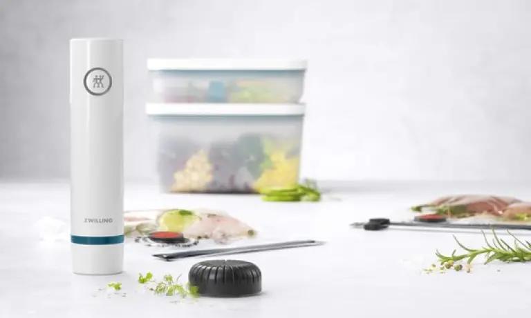 De vacuümpomp werkt eenvoudig via een app, waardoor je met één druk op de knop de lucht uit je zakken en potten zuigt. De pomp schakelt automatisch uit zodra het juiste vacuüm bereikt is. Bovendien scan je met de ZWILLING Culinary World App de QR-codes op de potten en zakken. Zo houd je gemakkelijk bij wat je in huis hebt en wanneer het tijd is om je maaltijden te gebruiken. Zo blijft je persoonlijke versmarkt overzichtelijk en binnen handbereik.