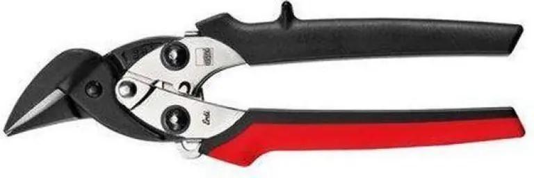 Ideaalschaar klein en wendbaar, voor doorlopend recht en figuurknippen. Bijzonder geschikt voor kleine radiussen en moeilijk toegankelijke plaatsen. Erdi Ideaal schaar 180 mm, 2-K greep links