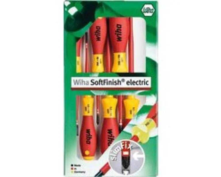 Bij handmatig schroeven worden op den duur polsen en spieren zwaar belast. Uitkomst biedt hier de zeer ergonomisch gevormde SoftFinish schroevendraaier, die zorgt voor een optimale overdracht van de handkracht. Met de lange, slanke handgreepafmetingen kunnen kleine schroeven betrouwbaar en snel worden ingedraaid. Voor het indraaien van grote schroeven zijn er forsere handgrepen waarmee de vereiste hogere momenten kunnen worden uitgeoefend. Daarnaast zijn de diverse handgreepmaten aangepast aan de steeds gelijke afmetingen van de hand van de professional. De wegrolbeveiliging en het schroefsymbool op het uiteinde van de handgreep zorgen voor efficiënt werken. Bij de speciaal voor elektrische toepassingen ontwikkelde Wiha slimTechnology is de isolatie in de schacht geïntegreerd om tot 33% slankere schachten mogelijk te maken. Zo kunnen ook diepliggende schroef- en veerelementen moeiteloos worden bereikt. De geïsoleerde schroevendraaiers worden conform de internationale norm IEC 60900 aan een 100% controle onderworpen en maken veilig werken mogelijk nabij onder spanning staande delen tot 1.000 V AC.