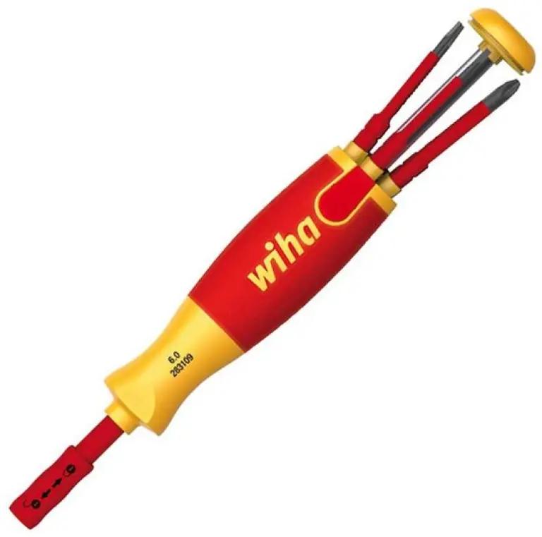 De Wiha 38611 bit schroevendraaier is speciaal ontworpen voor elektriciens die op locatie werken aan spanningvoerende delen tot 1.000 V AC. Dit gereedschap combineert veiligheid, gebruiksgemak en veelzijdigheid in รฉรฉn compacte schroevendraaier met een geรฏntegreerd bitmagazijn. Zo bespaar je tot 75% volume en 50% gewicht, wat je werkdag een stuk lichter maakt.