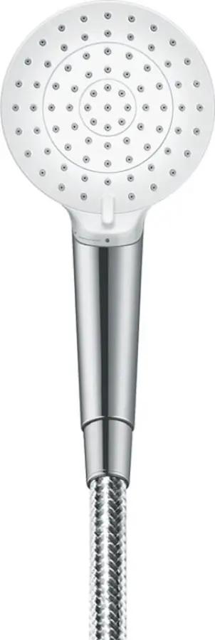 De Hansgrohe Crometta 100 Vario handdouche valt direct op door het glanzende chroomoppervlak gecombineerd met een witte straalplaat. Dit spannende contrast is niet alleen een lust voor het oog, maar is ook bekroond met een iF-award. Met een diameter van 10 cm biedt deze ronde handdouche een moderne en frisse uitstraling die perfect past in zowel klassieke als moderne badkamers.