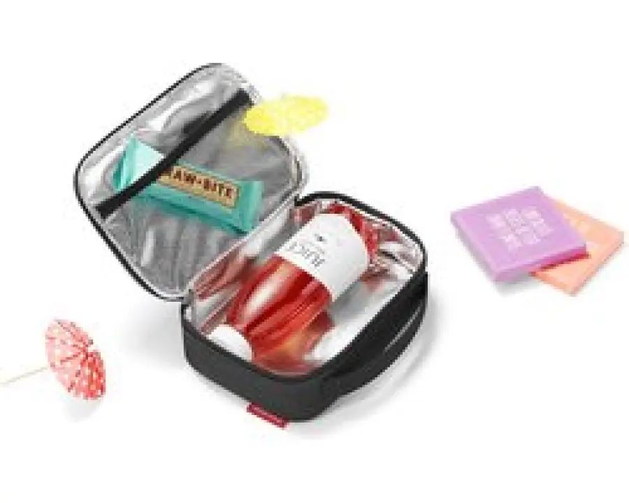 De Thermocase heeft een strak sluitend deksel met ritssluiting die ervoor zorgt dat de hitte buiten blijft. Binnenin vind je een handig netvak waarmee je kleinere spullen gemakkelijk kunt ordenen. Het comfortabele handvat maakt het meenemen van de case simpel en prettig, of je nu naar het strand gaat, op reis bent of je dagelijkse spullen wilt beschermen.