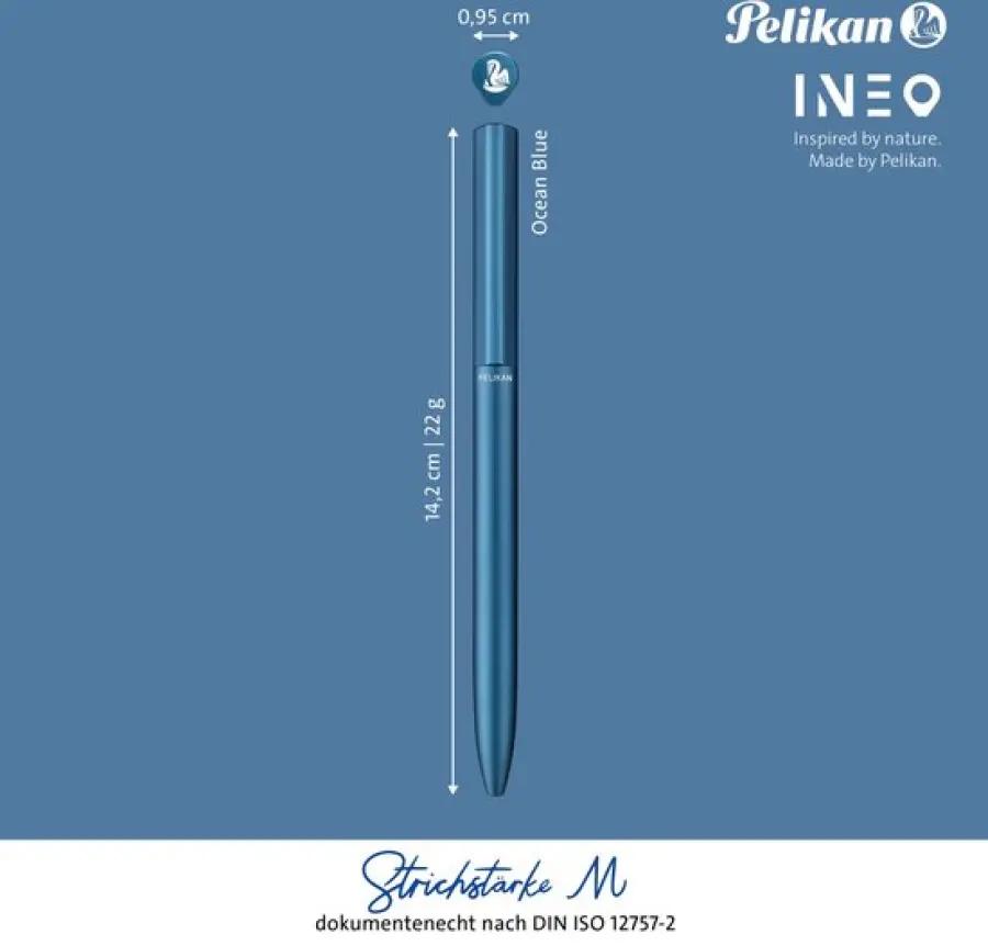 De Pelikan Büro 822473 balpen uit de INEO Elements collectie valt direct op door zijn unieke en opvallende ontwerp. Het gezandstraalde metalen oppervlak geeft de pen een matte, glinsterende afwerking in een prachtige ocean blue kleur. Dit minimalistische ontwerp zonder penclip maakt de balpen een echte blikvanger die stijlvol en modern oogt.
