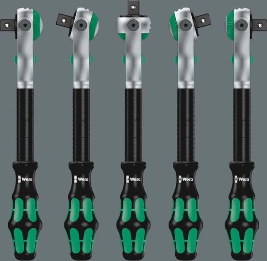 Centraal in deze set staat de 8000 A Zyklop Speed ratel met een 1/4" aansluiting. Dankzij de vliegwielconstructie en vrijloophuls wordt het schroefproces aanzienlijk versneld. De ratelkop kan vrij gedraaid worden en heeft vooraf ingestelde vastzetpunten op 0°, 15° en 90° naar links of rechts. Zo kun je de ratel ook als gewone schroevendraaier gebruiken. Met het kartelwiel schakel je snel en eenvoudig tussen rechts- en linksom draaien. De fijne vertanding en een kleine terughaalhoek van slechts 5° zorgen voor precieze controle, zelfs in krappe ruimtes.