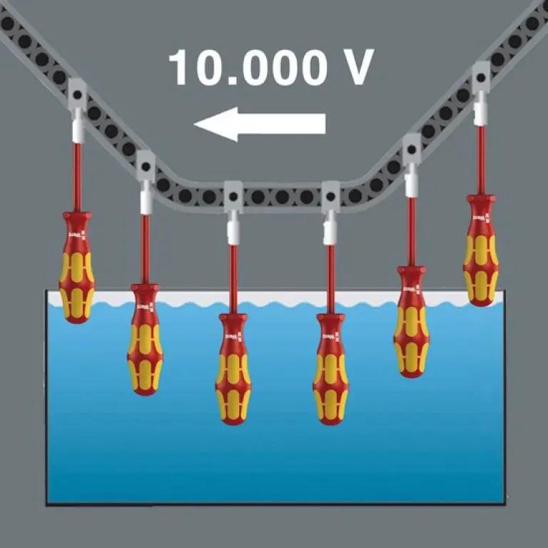 De Wera 05105631001 handschroevendraaierset is speciaal ontworpen met het VDE-keurmerk, wat betekent dat je veilig aan elektrische installaties kunt werken. Deze set is perfect voor iedereen die op zoek is naar betrouwbare en veilige schroevendraaiers die voldoen aan hoge veiligheidsnormen.