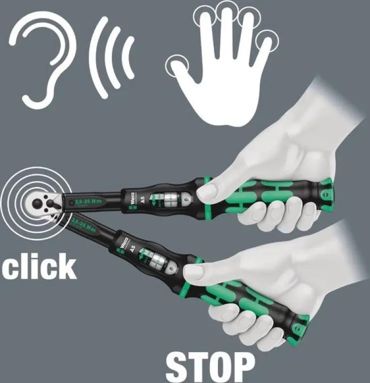 | Verpakkingsinhoud | 1 stuks Wera Click-Torque A 5 Draaimomentsleutel met omschakelrratel 1/4 Vierkant |