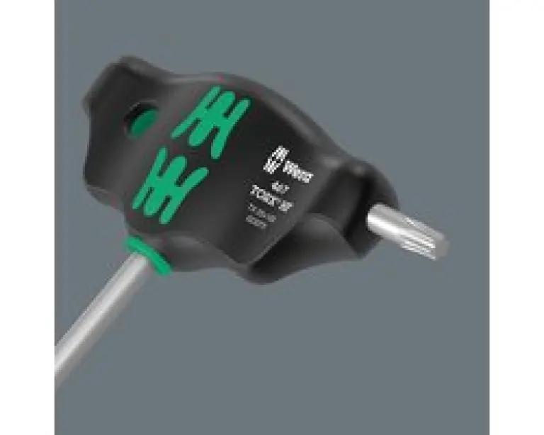 Deze 8-delige schroevendraaierset van Wera, type 05023452001, is ontworpen voor wie hoge eisen stelt aan gereedschap. De set bevat 7 Torx T-greep schroevendraaiers in verschillende maten, plus een stevige houder. De T-greep zorgt voor een optimale grip, zodat jij moeiteloos hoge aanhaal- en losdraaimomenten kunt overbrengen. Dit maakt het werken met binnenzeskantschroeven niet alleen makkelijker, maar ook veel efficiënter.