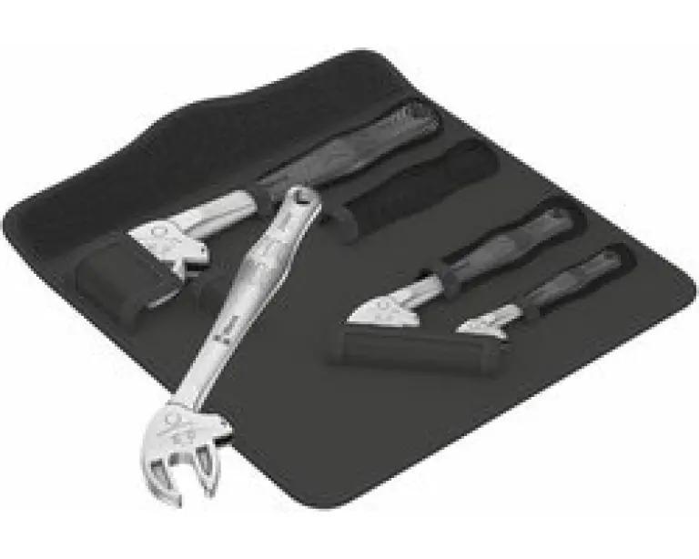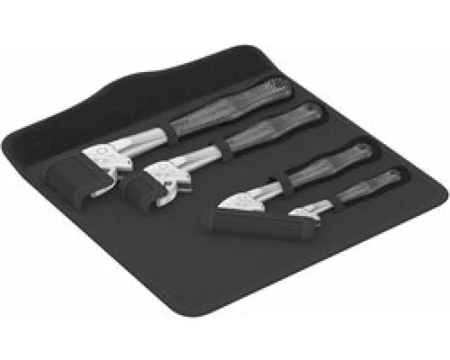 De Wera 6004 Joker wordt geleverd met vier zelfinstellende steeksleutels in verschillende maten: XS (7 x 10 mm), S (10 - 13 mm), M (13 - 16 mm) en L (16 - 19 mm). Daarnaast krijg je er een handige etui bij om alles netjes op te bergen. Zo heb je altijd de juiste maat bij de hand.
