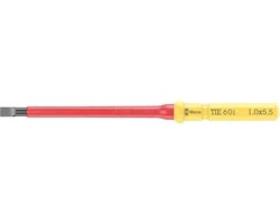 De Wera Kraftform Compact VDE 7 universele schroevendraaierset is speciaal ontworpen voor veilig gebruik bij elektronische werkzaamheden. Elk stuk gereedschap is individueel getest volgens de IEC 60900 norm en bestand tegen spanningen tot 10.000 V, waardoor je veilig kunt werken tot een toegestane spanning van 1000 V. Met deze set ben je verzekerd van maximale veiligheid bij het werken met elektrische installaties.