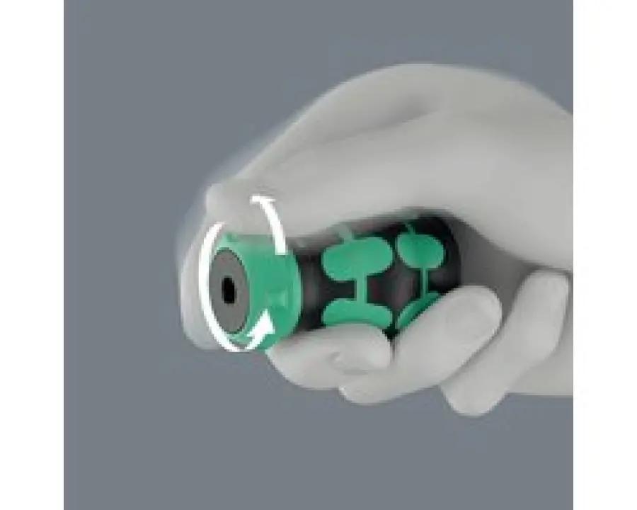 De 2-componenten handgreep van Wera is ontworpen met harde en zachte zones. Dit zorgt voor een stevige, comfortabele grip en maakt nauwkeurig schroeven makkelijker dan ooit. De bitset bevat 6 taaie bits voor universeel gebruik, stevig vastgehouden door een krachtige permanente magneet in de bithouder. Zo verlies je nooit een bit tijdens je klus.