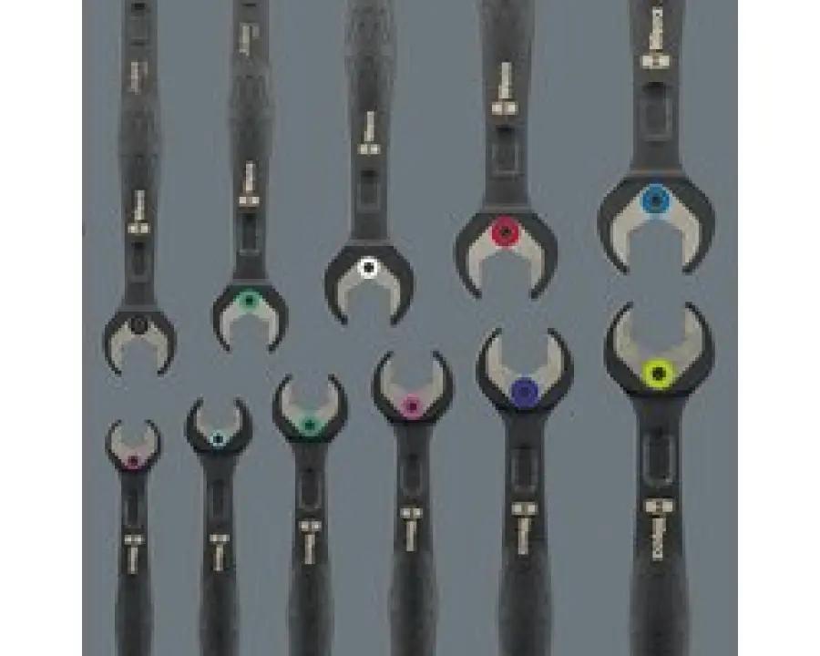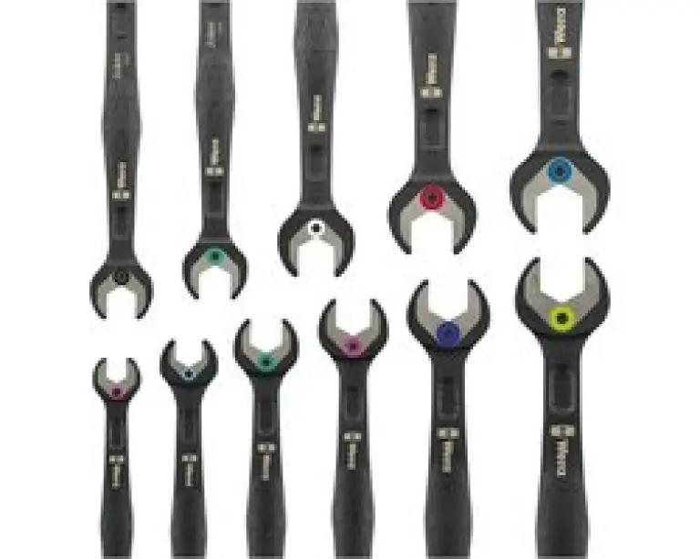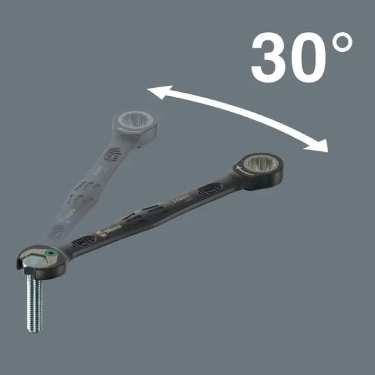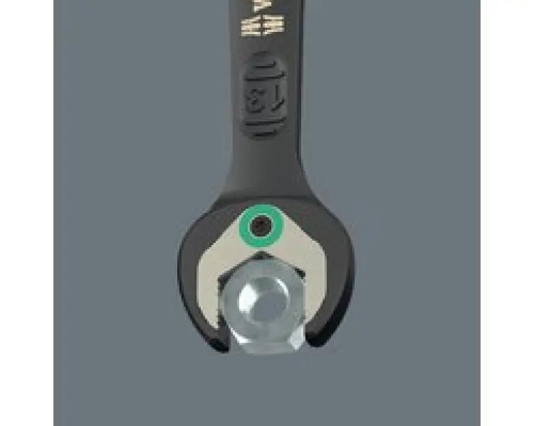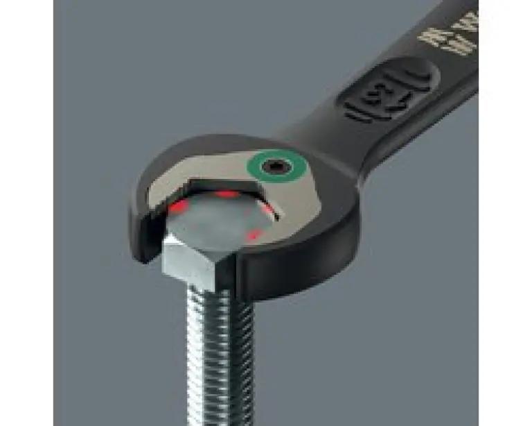 De sleutels zijn voorzien van een slimme vasthoudfunctie dankzij een metalen plaat in de bek, waardoor schroeven en moeren niet zomaar losraken. Daarnaast zorgt de geïntegreerde eindaanslag ervoor dat de schroefkop niet naar beneden kan glijden, wat ook het gebruik van hoge draaimomenten mogelijk maakt. De dubbele zeskantgeometrie vermindert het risico op wegglijden, terwijl de terughaalhoek van slechts 30° zorgt voor snel en efficiënt werken, ook op krappe plekken.
