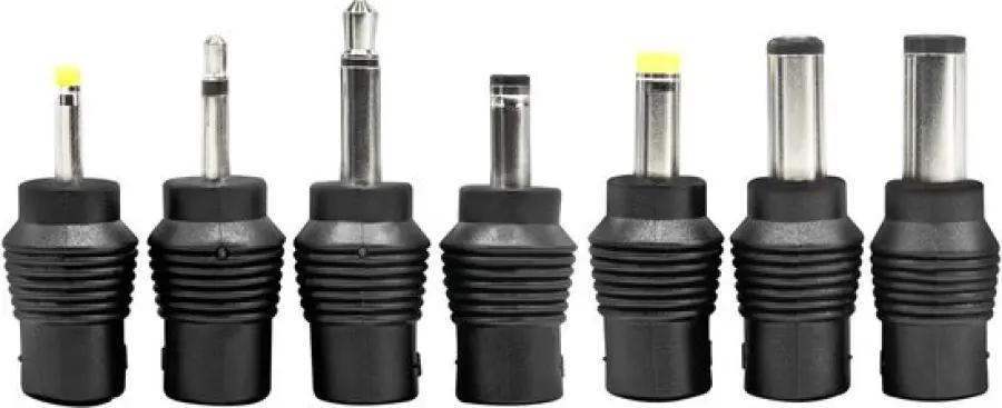 In de verpakking vind je de APS 2250L netadapter met een EU-netstekker en een 2 meter lange kabel. Daarnaast ontvang je een set van zeven secundaire stekkers met een kabel van 1,8 meter, zodat je direct aan de slag kunt. De netvoeding is zwart van kleur en heeft een CE-markering, wat staat voor kwaliteit en veiligheid.