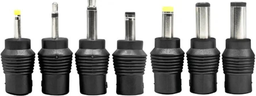 In de verpakking vind je de APS 2250L netadapter met een EU-netstekker en een 2 meter lange kabel. Daarnaast ontvang je een set van zeven secundaire stekkers met een kabel van 1,8 meter, zodat je direct aan de slag kunt. De netvoeding is zwart van kleur en heeft een CE-markering, wat staat voor kwaliteit en veiligheid.