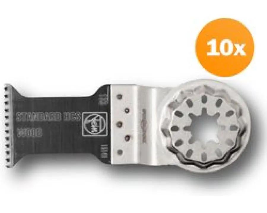 De set bevat 10 stuks van het E-Cut Standard zaagblad, zodat je direct klaar bent voor meerdere zaagklussen. Het Starlock systeem zorgt ervoor dat je de zaagbladen snel en stevig kunt wisselen, waardoor je kostbare tijd bespaart. Bovendien krijg je met Fein kwaliteit en een fabrieksgarantie van 1 jaar, voor extra zekerheid.