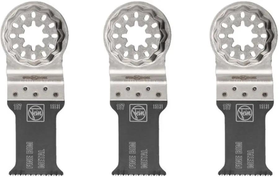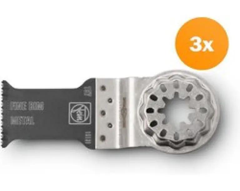Je ontvangt een set van 3 zaagbladen, elk met een lengte van 50 mm en een breedte van 30 mm. Deze set is ideaal als je regelmatig zaagklussen hebt en altijd een scherp zaagblad bij de hand wilt hebben. Dankzij het Starlock opnamesysteem past het blad perfect op je oscillerende multitool van Fein.