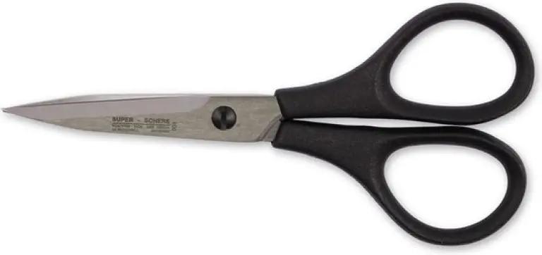 Deze schaar combineert vakmanschap met comfort. De roestvrijstalen messen zijn duurzaam en scherp dankzij een speciale slijping. De symmetrische, zwarte handgrepen van breukvaste kunststof zorgen voor een comfortabele grip, waardoor je langer zonder vermoeidheid kunt knippen. Dankzij de verstelbare schroefverbinding beweegt de schaar soepel en kun je de spanning precies afstellen voor optimaal gebruik.