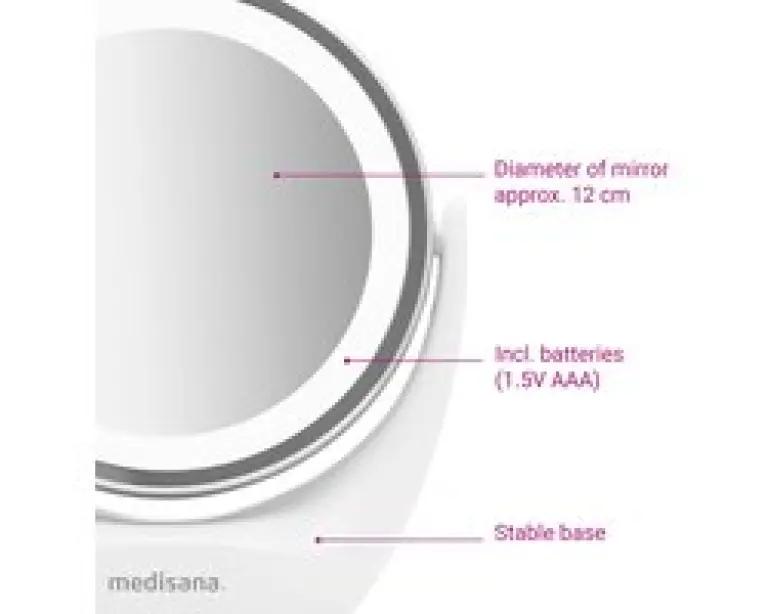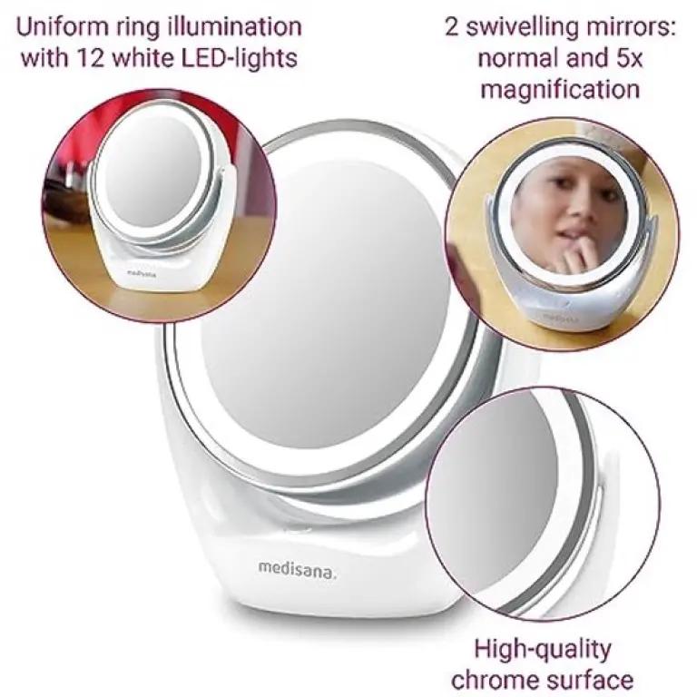 Met de Medisana CM 835 LED cosmeticaspiegel haal je een hulpmiddel in huis waarmee je je dagelijkse gezichtsverzorging net zo professioneel kunt uitvoeren als bij de schoonheidsspecialist. De spiegel is uitgerust met helder wit LED-licht dat je gezicht gelijkmatig verlicht, zodat je geen detail mist tijdens het verzorgen of opmaken.