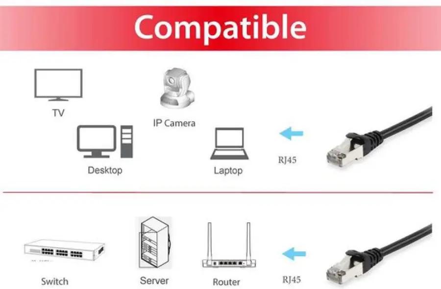 De kabel heeft een stevige, aangegoten knikbescherming en trekontlasting, waardoor hij flexibel is en lang meegaat zonder beschadiging. De stekkers zijn voorzien van een lengteopdruk zodat je altijd weet hoe lang de kabel is, wat handig is bij het organiseren van je netwerk. Daarnaast voldoet de kabel aan diverse veiligheids- en kwaliteitsnormen zoals UL/CUL, ETL en TIA/EIA.