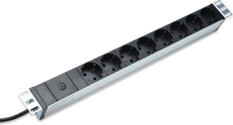 De DIGITUS DN-95410 is een 19 inch stekkerdoos die speciaal ontworpen is voor gebruik in netwerk- of serverkasten. Met een hoogte van 1 HE past hij perfect in je patchkast, waardoor je al je apparaten netjes en overzichtelijk van stroom kunt voorzien. Dankzij het zwarte aluminiumprofiel ziet hij er strak en professioneel uit.