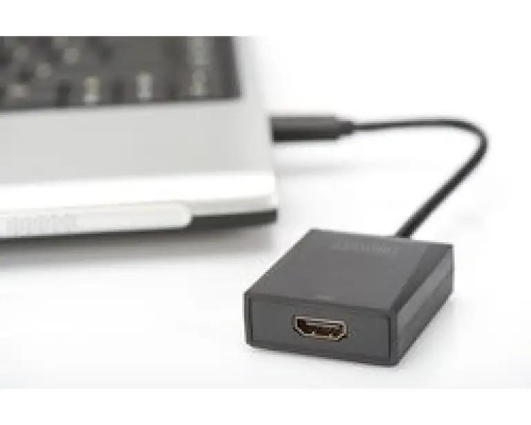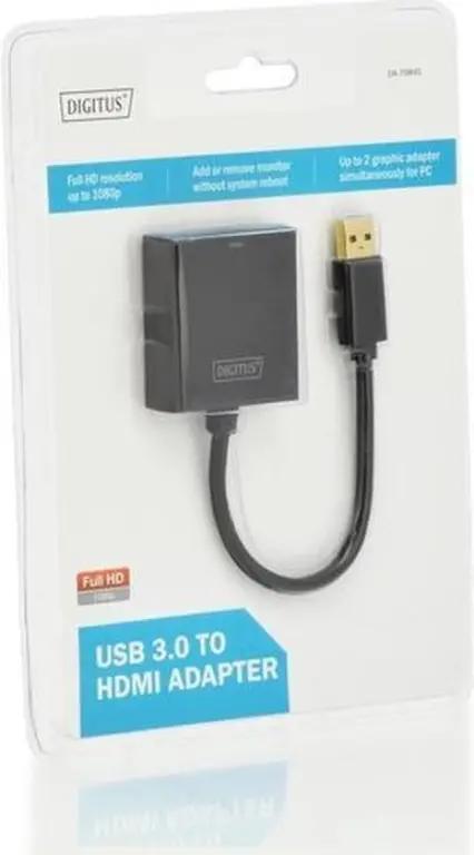 Met de Digitus DA-70841 USB 3.0 naar HDMI-adapter breid je eenvoudig je werkplek uit met een extra monitor, televisie of projector. Dankzij de USB 3.2 Gen 1 aansluiting sluit je deze adapter snel aan zonder gedoe. De adapter werkt direct na installatie van de driver, zodat je snel aan de slag kunt zonder extra videokaarten te installeren.
