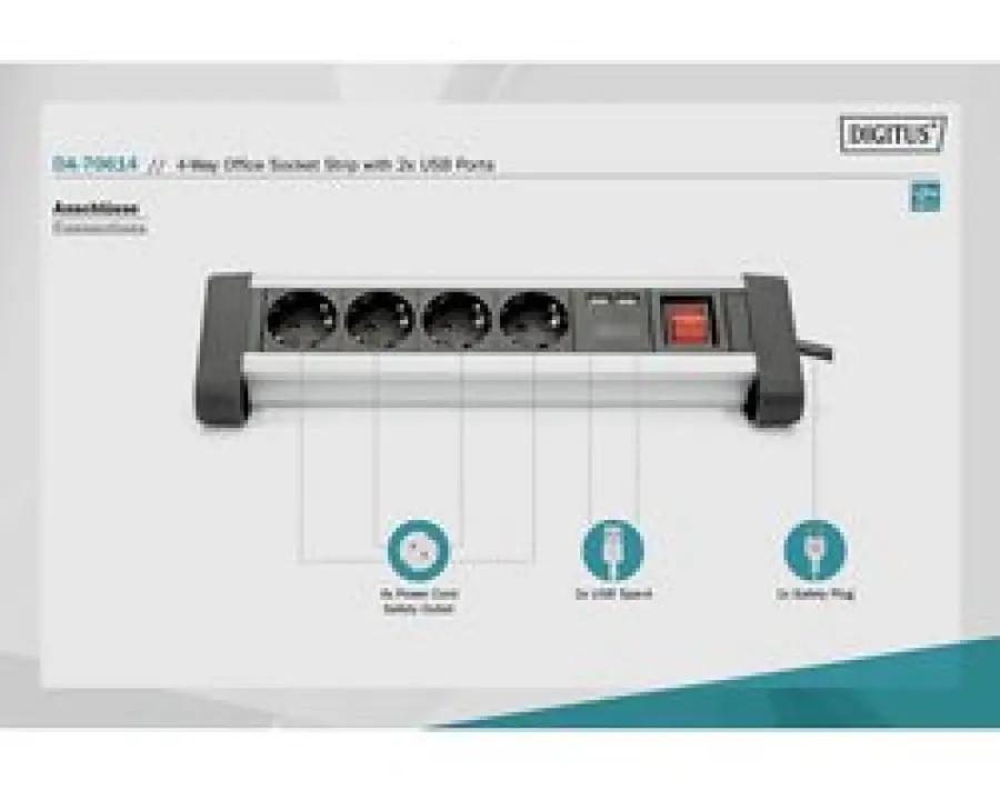 | Verpakkingsinhoud | 4-voudige kantoorstekkerdoos met 2 x USB-aansluitingen, 2 x klemhouders, Gebruiksaanwijzing. |