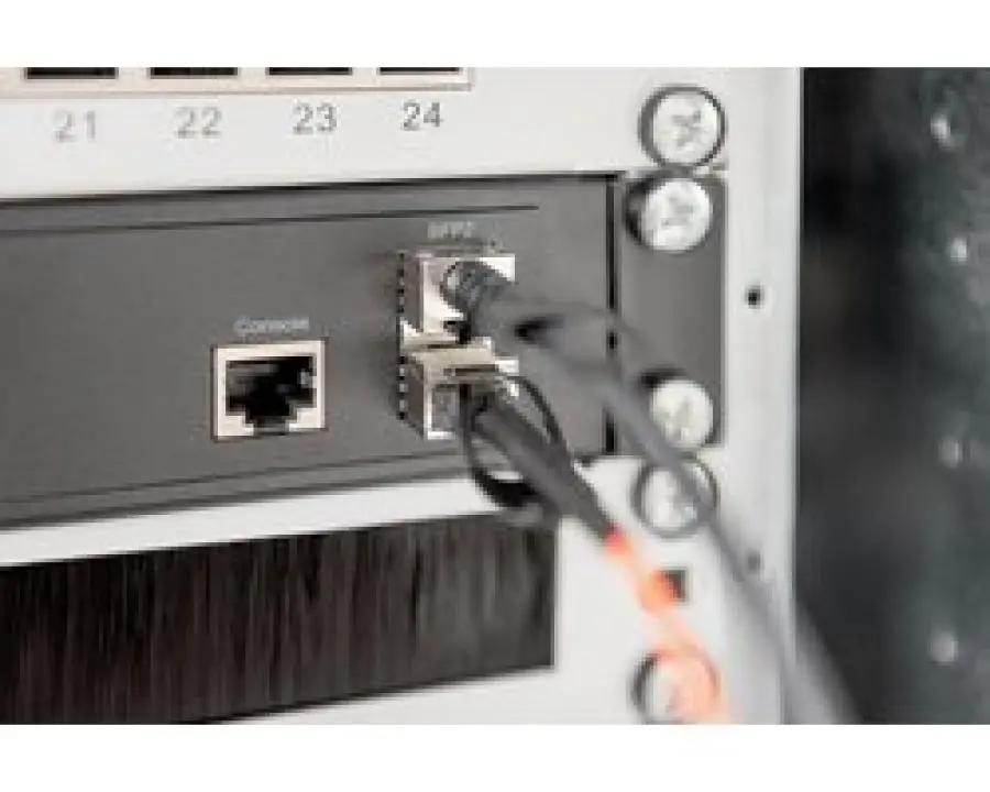 Deze kabel is uitgerust met twee SFP+ aansluitingen, waardoor je profiteert van een stabiele en snelle dataoverdracht. SFP+ is een veelgebruikte standaard in datacenters en professionele netwerken voor het verbinden van switches en servers met hoge snelheden.