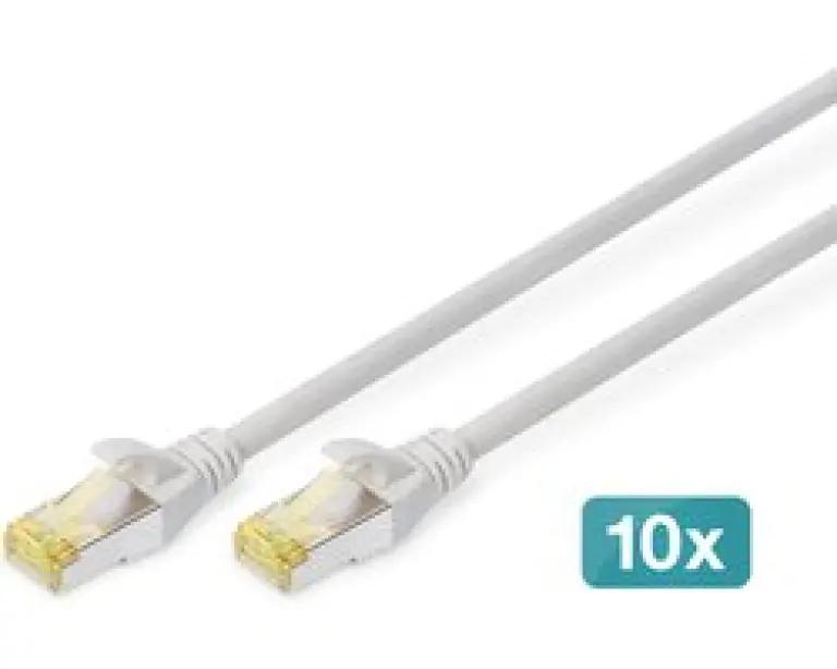 De kabel is voorzien van RJ45 aansluitingen aan beide zijden, waardoor hij compatibel is met vrijwel alle standaard netwerkapparatuur. De set bevat 10 stuks, verpakt in een compacte en lichte verpakking, wat ideaal is voor zowel professioneel gebruik als thuisnetwerken.