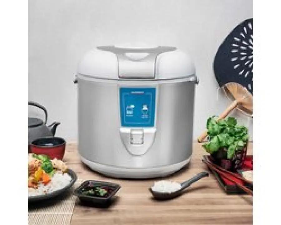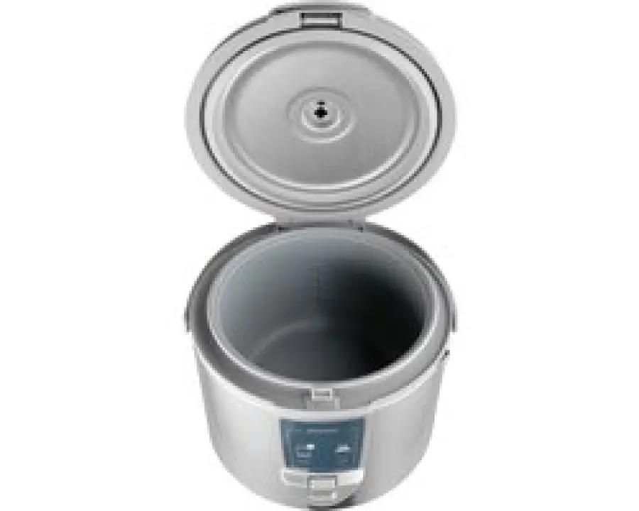 De behuizing van de rijstkoker is gemaakt van stevig roestvrij staal, wat hem duurzaam en stijlvol maakt in elke keuken. De antislipbodem zorgt ervoor dat de rijstkoker stevig op het aanrecht blijft staan. De binnenkom is voorzien van een antikleeflaag, zodat de rijst en andere gerechten niet blijven plakken en schoonmaken makkelijk gaat. Hoewel de kom niet vaatwasserbestendig is, is hij wel eenvoudig te reinigen dankzij de verwijderbare binnenpan. De bediening gaat gemakkelijk met knoppen, zodat je snel aan de slag kunt.