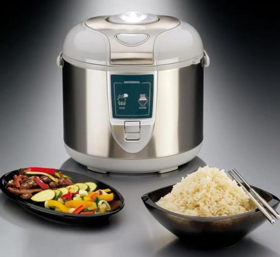 De Gastroback 42507 rijstkoker is ideaal voor iedereen die snel en makkelijk rijst wil bereiden, maar ook meer wil kunnen dan dat. Met een ruime inhoud van 3 liter bereid je tot wel 5 porties rijst tegelijk, perfect voor gezinnen of etentjes met vrienden. Deze rijstkoker is daarnaast multifunctioneel: je kunt er ook pap mee koken, groenten stomen of soep warm houden. Zo gebruik je hem voor meerdere gerechten en keukentaken.
