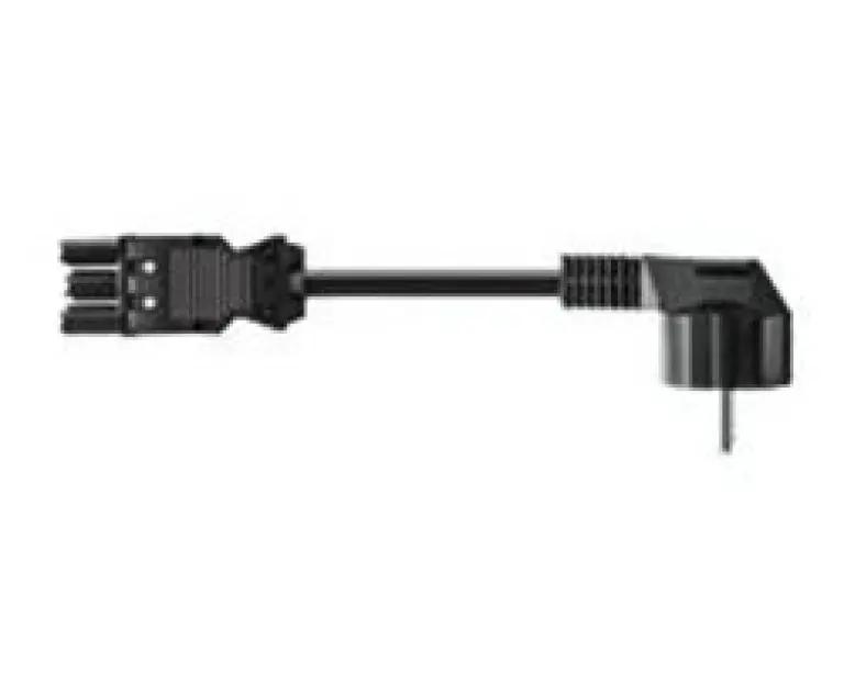 De Bachmann 375.075 is een zwarte stroomkabel van 2 meter lang, uitgerust met een geaarde CEE 7/7 stekker. Deze kabel is ideaal om een 18/3 component, zoals een stekkerdoos, te verbinden met het stopcontact. Dankzij de haakse stekker past hij perfect in het stopcontact zonder te veel ruimte in te nemen.