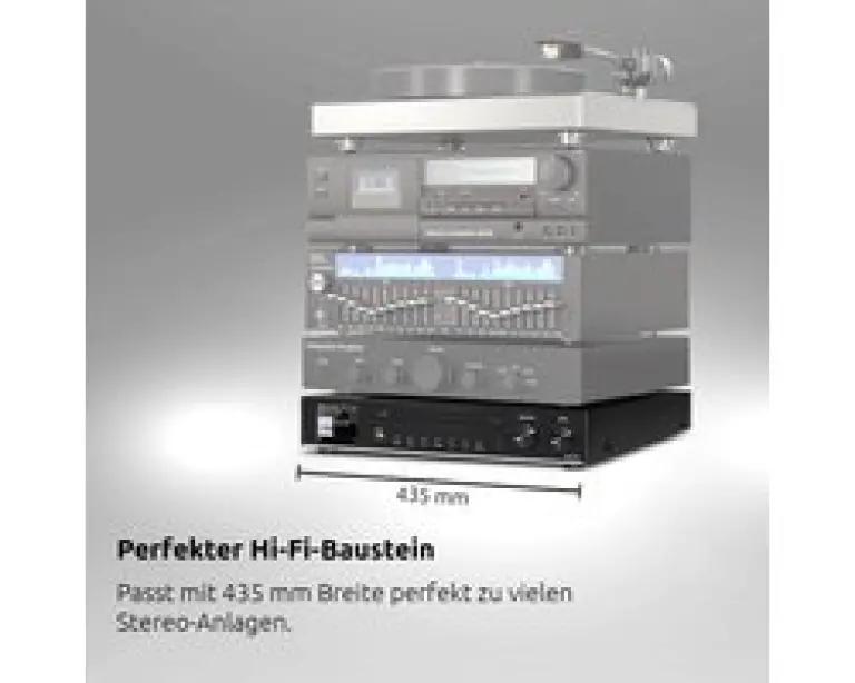 De TechniSat Digitradio 0000/3989 is met een breedte van slechts 435 mm een compacte en stijlvolle aanvulling op je muzieksysteem. Dankzij het strakke zwarte design past deze tuner moeiteloos in elke ruimte zonder te veel plek in te nemen.