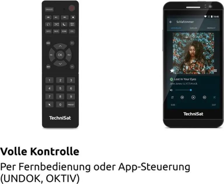 Naast de veelzijdige muziekopties heeft de TechniSat tuner ook handige functies zoals een klok, sleeptimer, alarm en snooze. De meertalige interface maakt het gebruik nog eenvoudiger. Voor aansluiting zijn er diverse opties, waaronder USB voor opladen en afspelen, optische en analoge audio-uitgangen, en een AUX-ingang.
