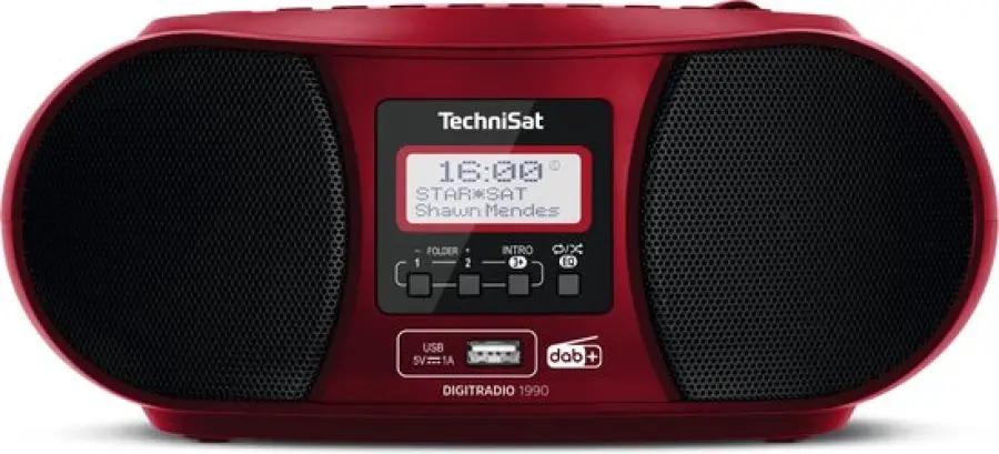 TechniSat DigitRadio 1990. Soort tuner: Digitaal, Ondersteunde frequentiebanden: DAB+, FM, FM-band: 87,5 - 108 MHz. Soort optische drive: Speler, Optische drive type: CD, Laadmechanisme: Bovenkant. Gemiddeld vermogen: 3 W. Type beeldscherm: LCD. Kleur van het product: Rood