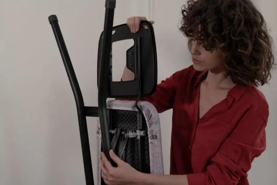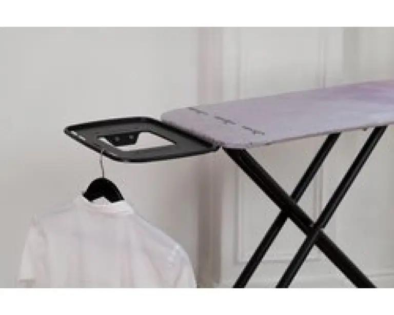 Met een stevig metalen frame en een gewicht van 5,94 kg staat deze strijkplank stabiel en gaat hij lang mee. De strijkplank is inklapbaar en daardoor makkelijk op te bergen, zonder in te leveren op ruimte. De zwarte effen kleur geeft een strakke en moderne uitstraling die in elk interieur past.