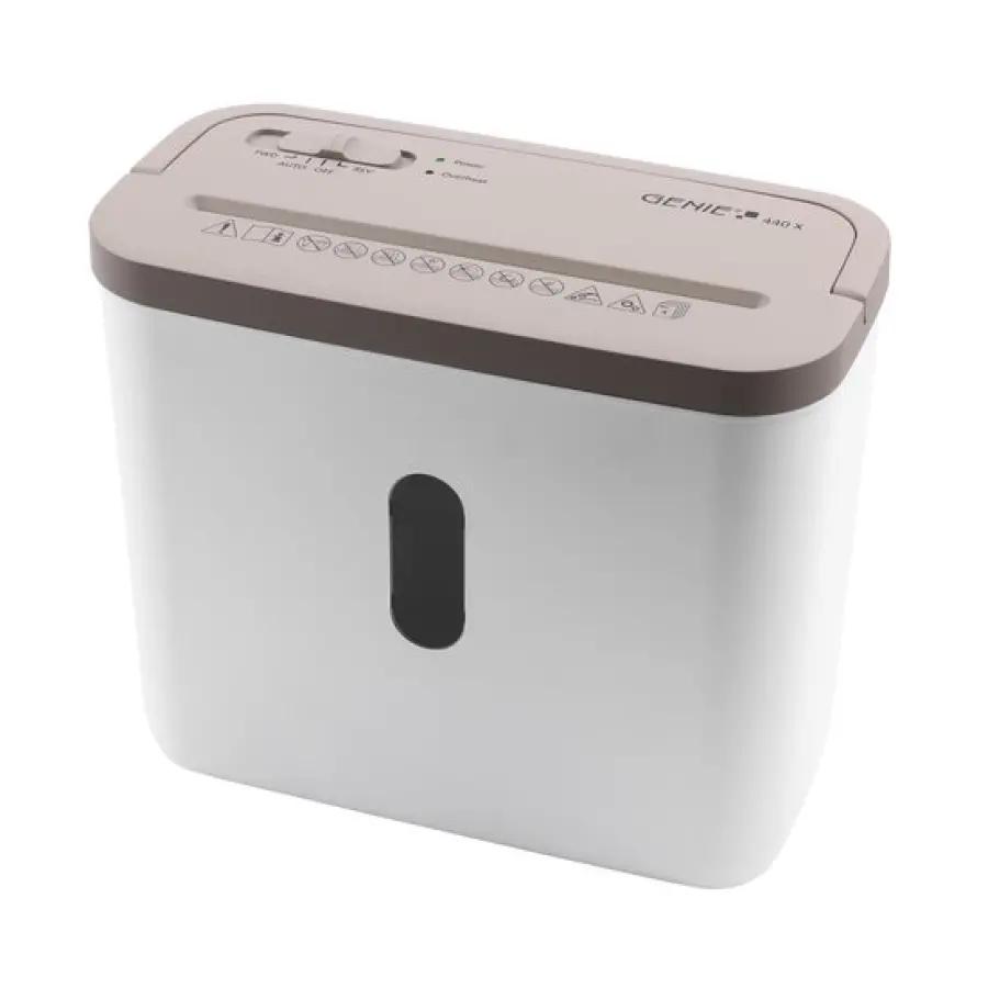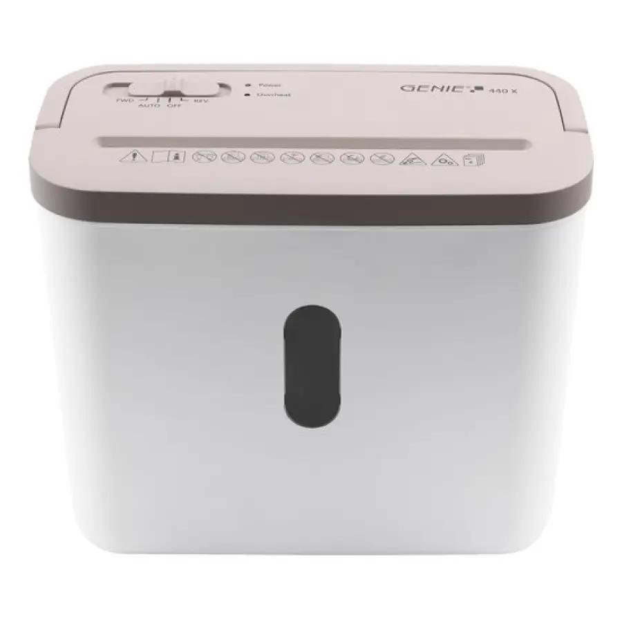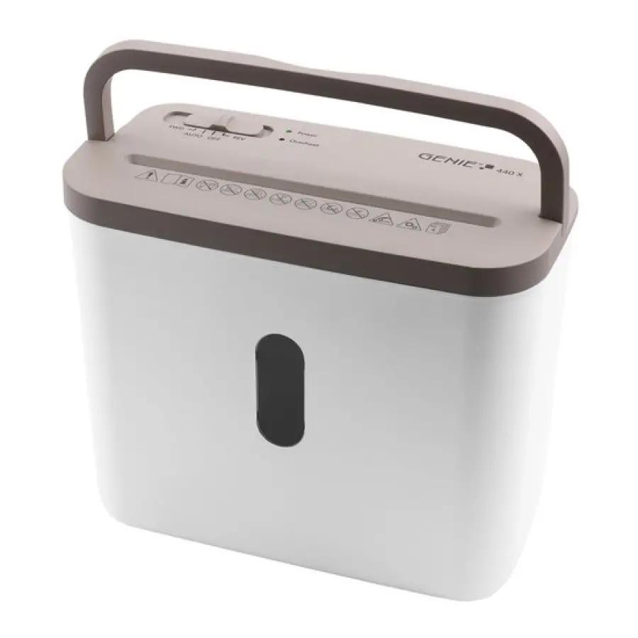 | Verpakkingsinhoud | Genie 440X Brown papiervernietiger met vaste stroomadapter, Handleiding |